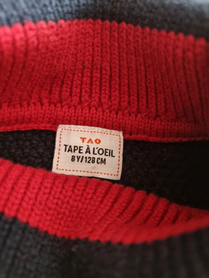 Pull col roulé bleu marine et rouge Tape à l'Oeil Taille 8 ans En très bon état.