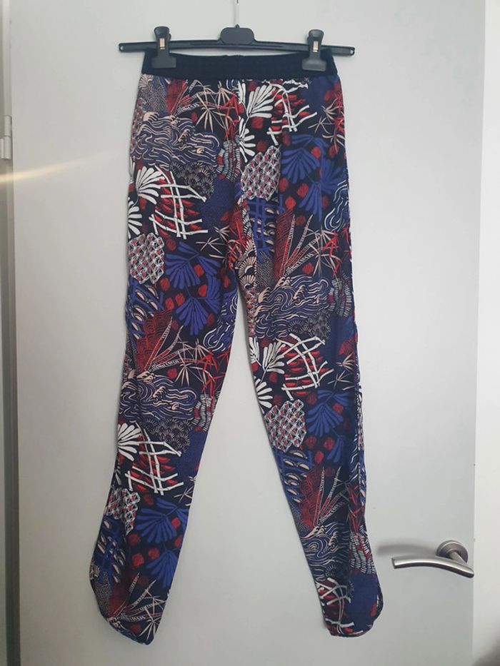 Pantalon fluide bleu marine avec motifs - H&M - Taille 34 - photo numéro 2