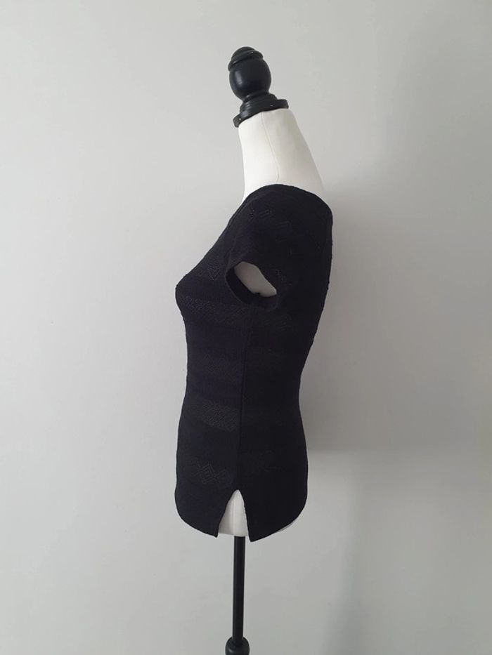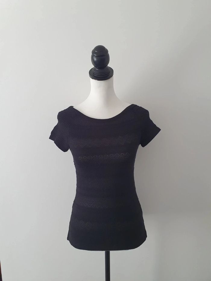 Pull fin noir H&M Taille XS Manches courtes avec mailles ajourées.