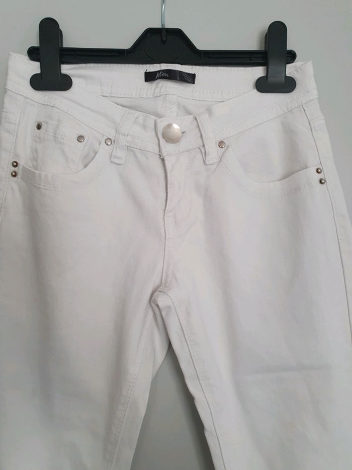 Skinny blanc Mim Taille 34 En très bon état général, mais je signale une légère petite tache sur une cuisse, voir la 3ème photo.