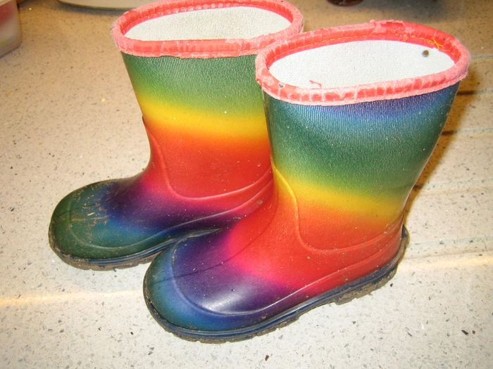 bottes de pluie taille 25 mixte fille garçon couleur arc en ciiel Très bon état sauf le contour rouge est usé