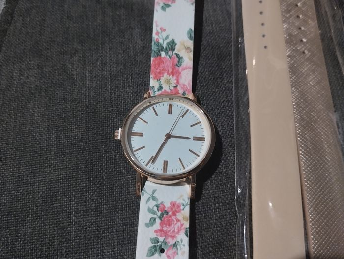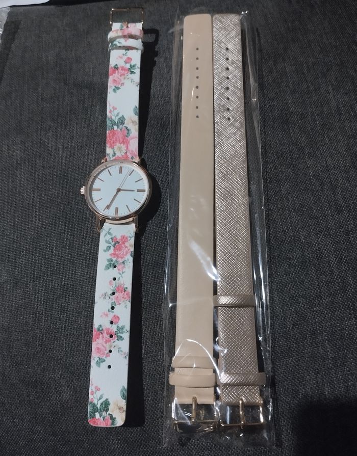 Neuve avec pastille protectrice sur le verre et pile. Fonctionne parfaitement. Avec 2 autres bracelets. Maison non fumeur. N'hésitez pas à visiter mon dressing.
