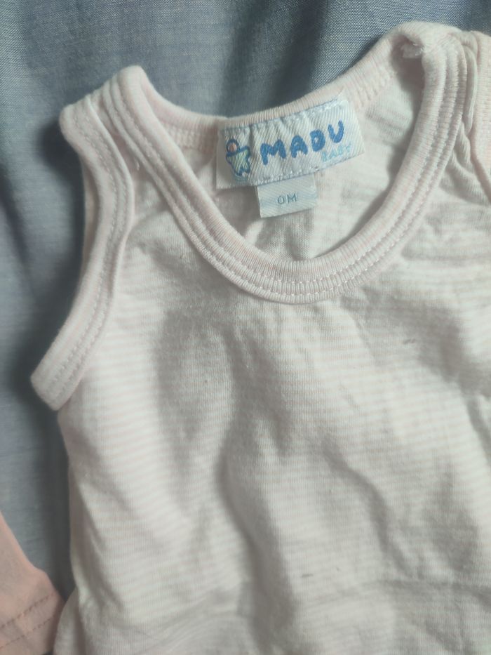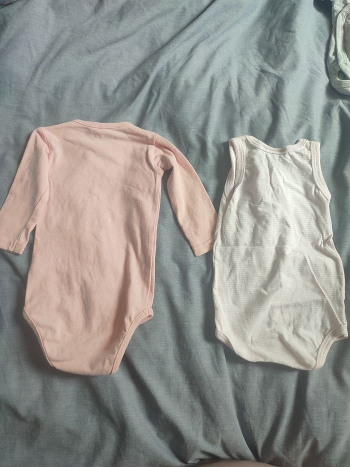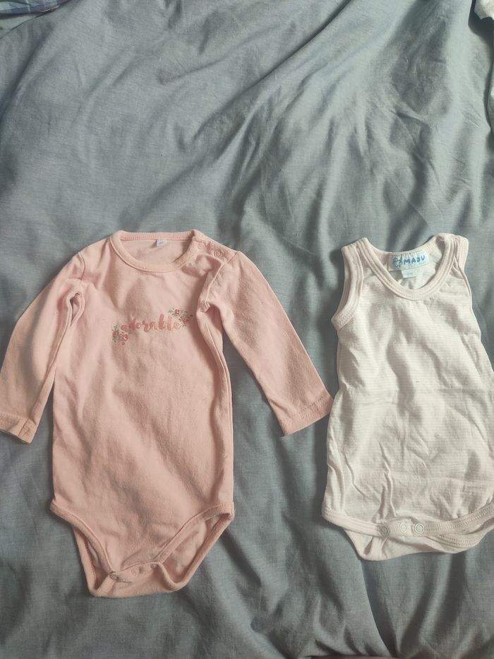 Lot de 2 bodies en état correct. Taille: 0 mois Envoi rapide et soigné.