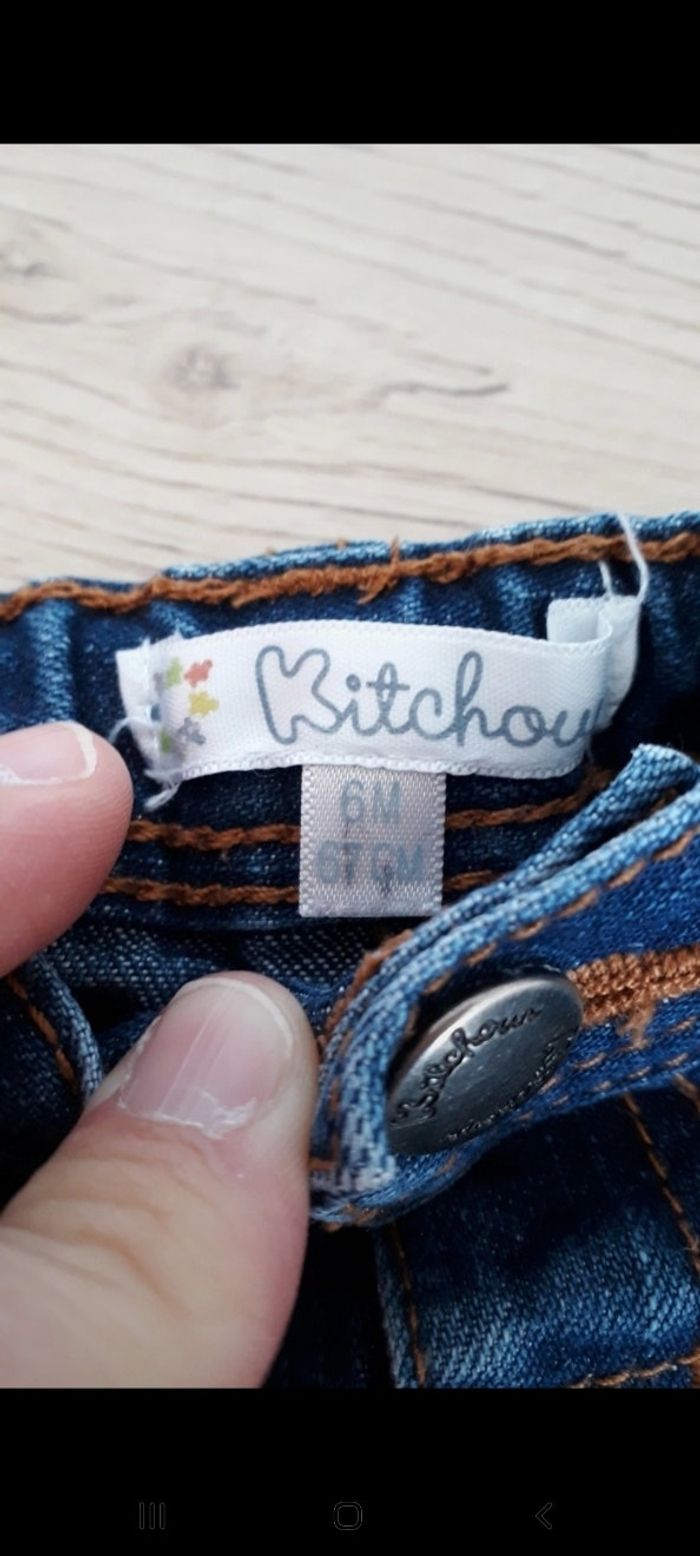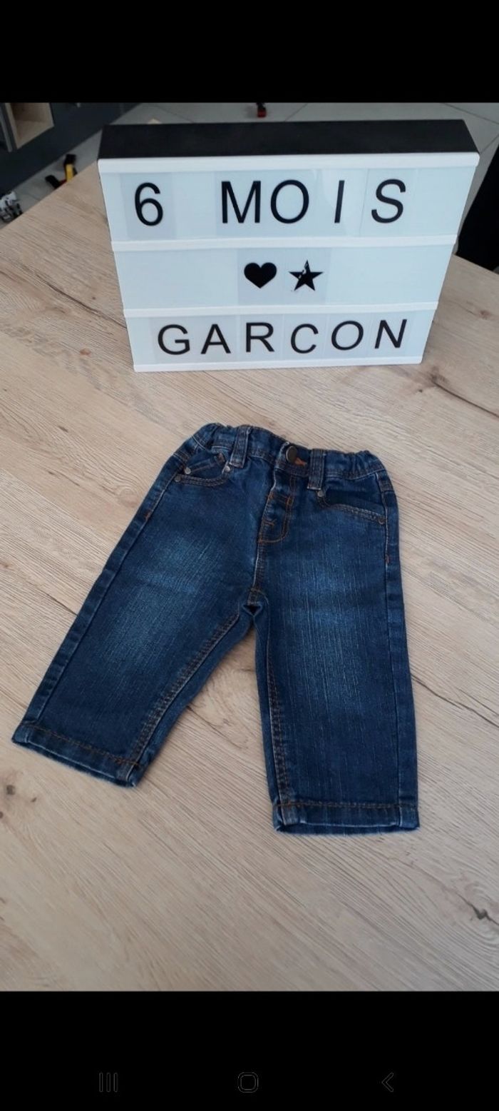 Jean garçon avec 4 poches (2 devant et 2 derrière). Bouton pression et possibilité de régler la taille a la ceinture. Taille 6 mois