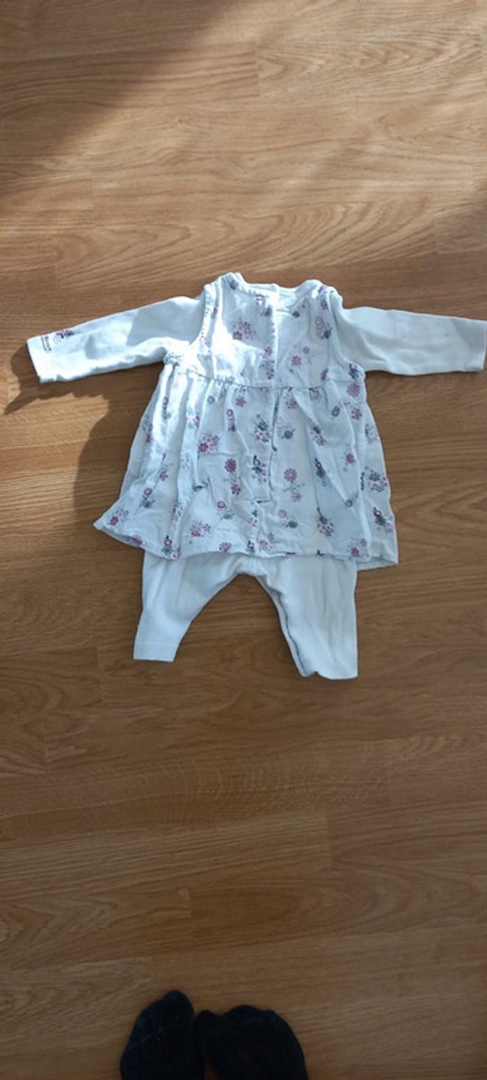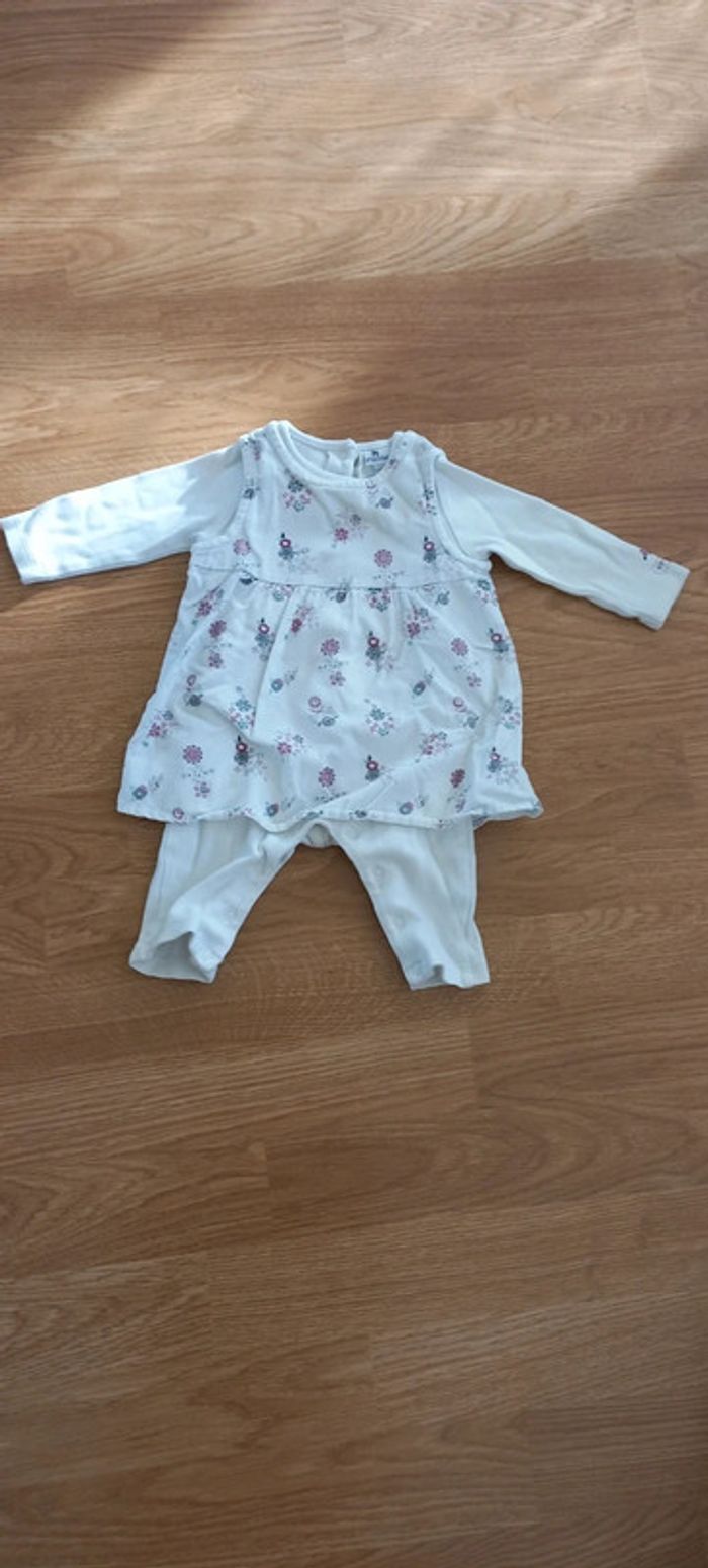 Ensemble 1 pièce robe-legging Facilité au niveau de l'entre jambe et du dos avec plusieurs boutons pressions Marque boutchou Taille 3 mois #nanadoucik_fille3mois