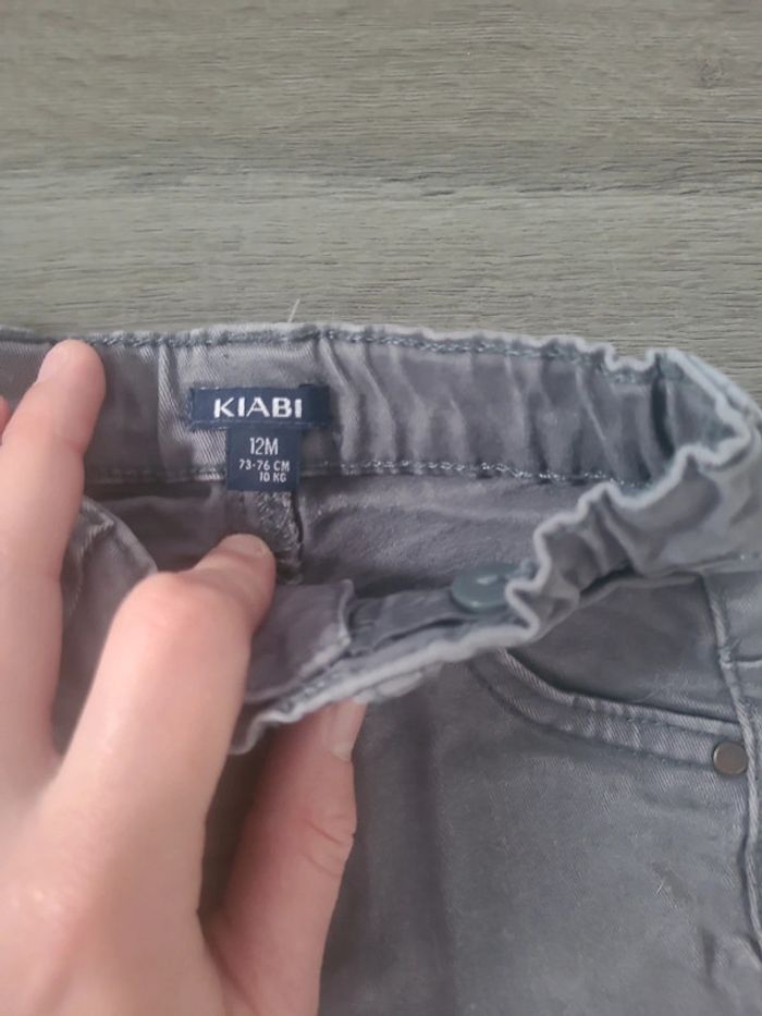 Joli jeans slim de couleur gris et de la marque kiabi. Se ferme avec un bouton à pression et réglable au niveau de la taille grâce à un élastique et un bouton à l'intérieur (voir photo 📷). En très bon état. 🎀 12 mois 🎀 73-76 cm 🎀 kiabi 🎀 98%coton 🎀 2% elasthanne #elodiectr44pantalonbebe12mois