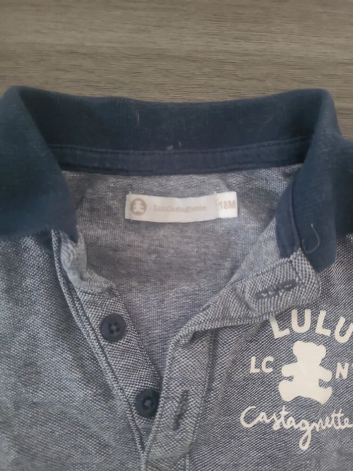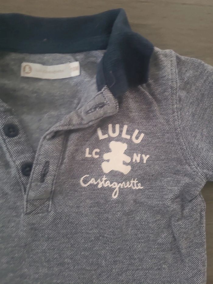 Très joli polo lulu castagnette. De couleurs gris, bleu marine et à manches courtes. Un petit fil de couture qui dépasse sur une manche (voir photo 📷) mais sinon en très bon état. 🎀 18 mois 🎀 100% coton 🎀 lulu castagnette 🎀 très bon état #elodiectr44polobebe18mois