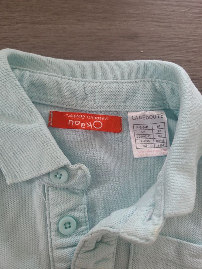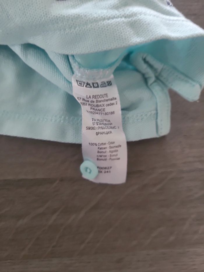 Très joli polo bleu turquoise de la marque la redoute. A manches courtes et un joli petit col qui se ferme avec 3 boutons. Ont voit sur la photo 📷 que l'étiquette à été mise à l'envers mais c'était comme ça quand je l'ai eut. 🎀 18 mois 🎀 81 cm 🎀 100 % coton 🎀 la redoute 🎀 bon état #elodiectr44polobebe18mois