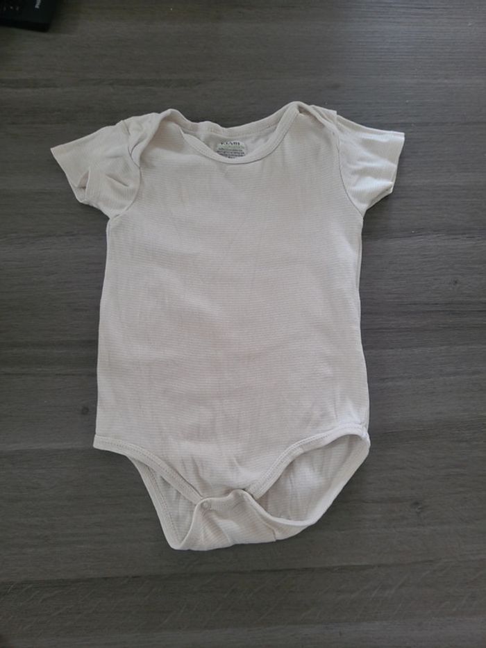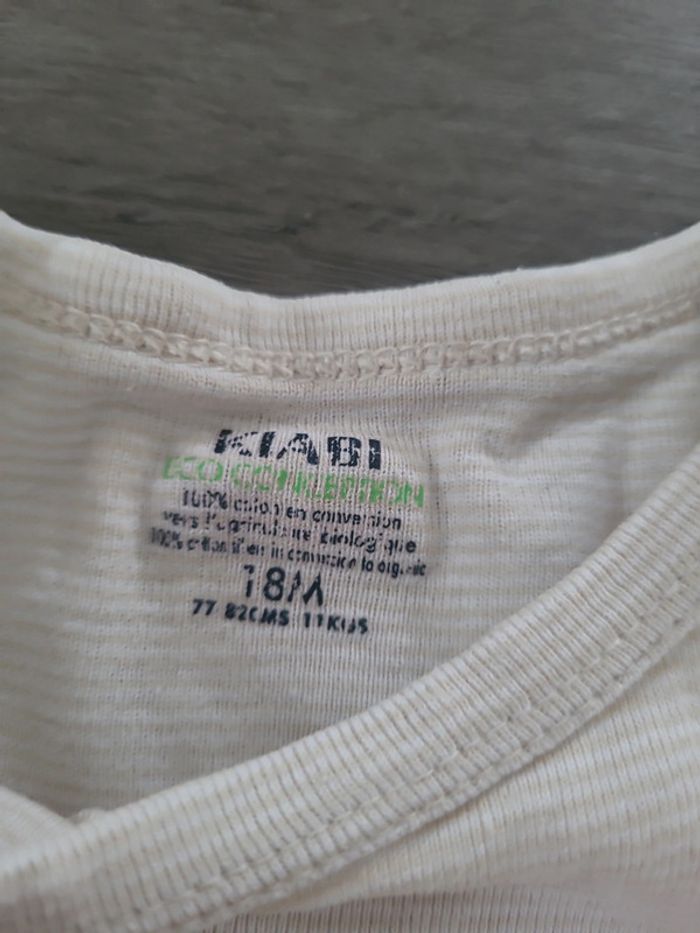 Très joli et simple bodie de la marque kiabi. De couleur blanc et crème à rayures. Bodie à manches courtes. 🎀 18 mois 🎀 77-82 cm 🎀 100% coton 🎀 kiabi 🎀 très bon état #elodiectr44bodiebebe18mois