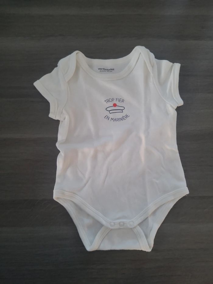 Très joli bodie à manches courtes, de la marque vertbaudet. De couleur blanc, trop fière en marinière. 3 boutons à pression pour le fermer en bas. Très bon état. 🎀 6 mois 🎀 67 cm 🎀 100% coton 🎀 vertbaudet 🎀 Très bon état #elodiectr44bodiebebe6mois