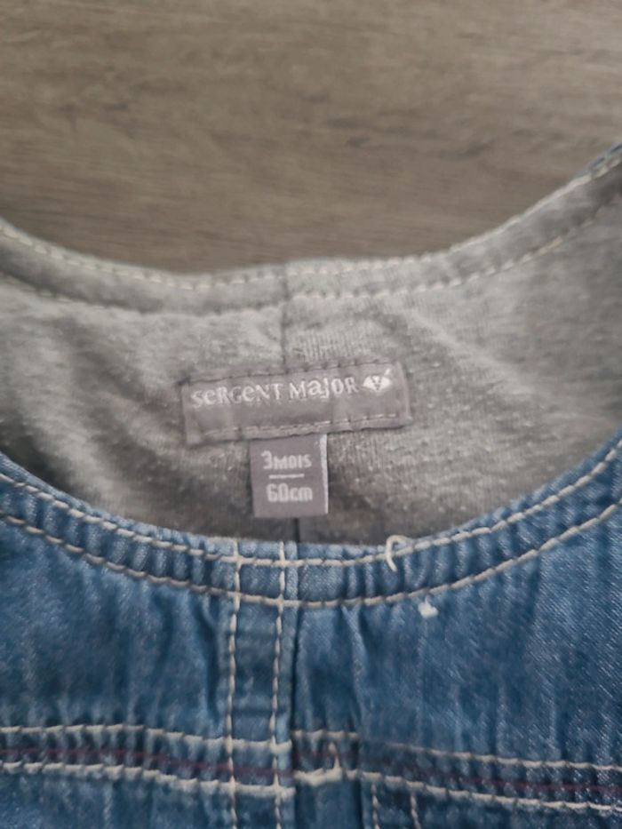 Très jolie salopette façon jeans, de labmarque sergent major. Un peu épaisse, quelques défauts aisbteste en bon état. 🎀 3 mois 🎀 60 cm Matière extérieure: 🎀 100% coton Doublure: 🎀 67% polyester 🎀 33% coton 🎀 bon état 🎀 sergent major #elodiectr44salopettebebe3mois