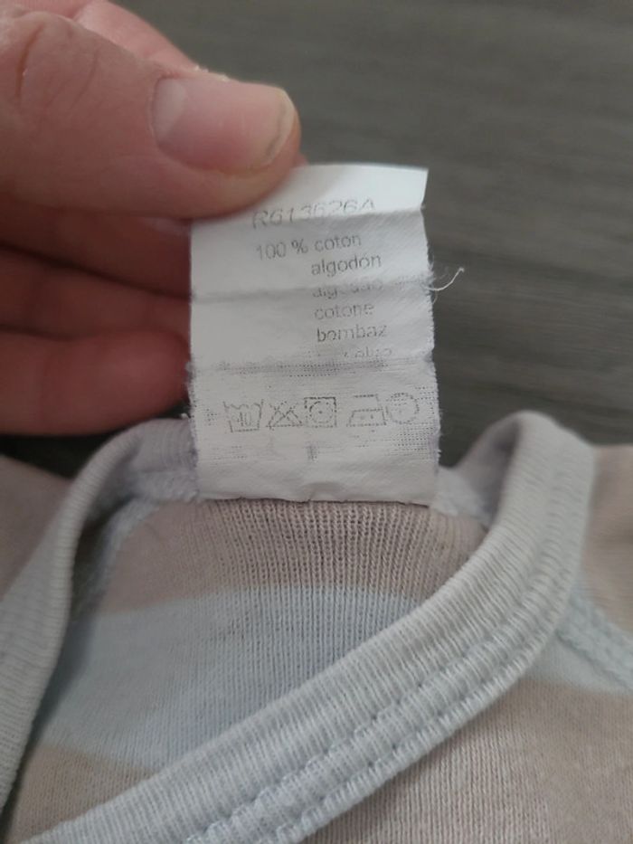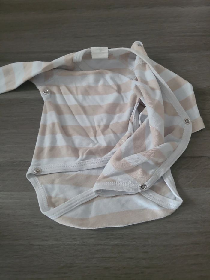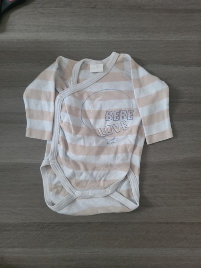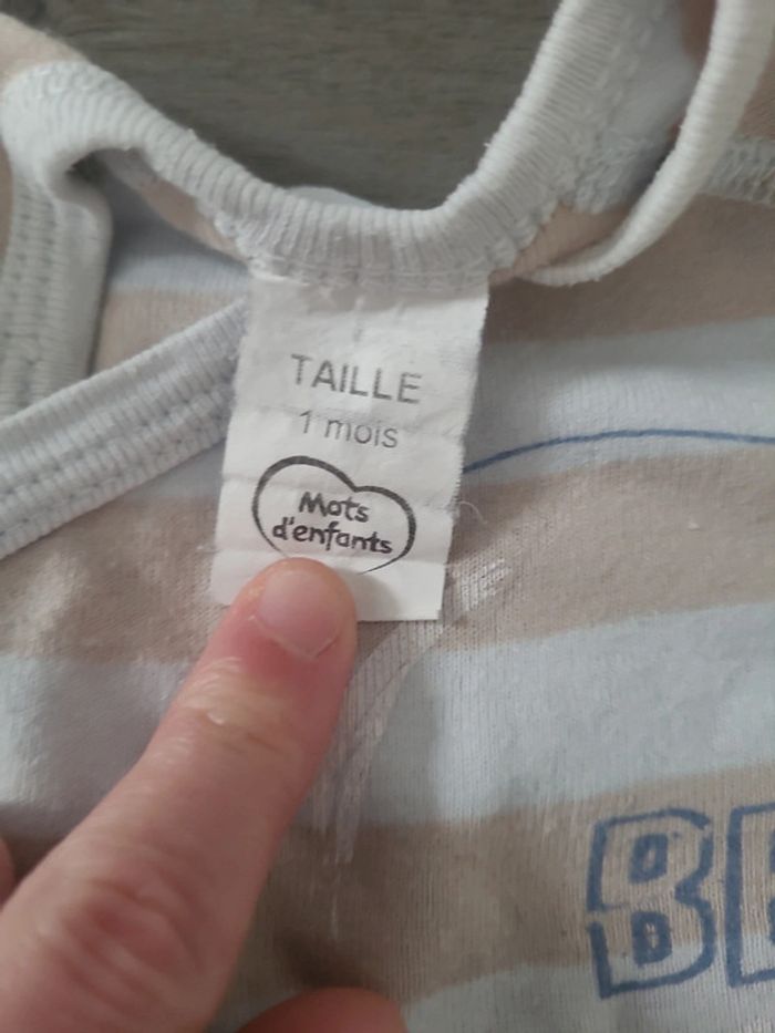 Petit bodie à manches longues de la marque mots d'enfants. De couleurs beige et bleu clair. Se ferme avec des boutons et en cache cœur. En bon état. 🎀 1 mois 🎀 mots d'enfants 🎀 100 % coton 🎀 bon état #elodiectr44bodiebebe1mois