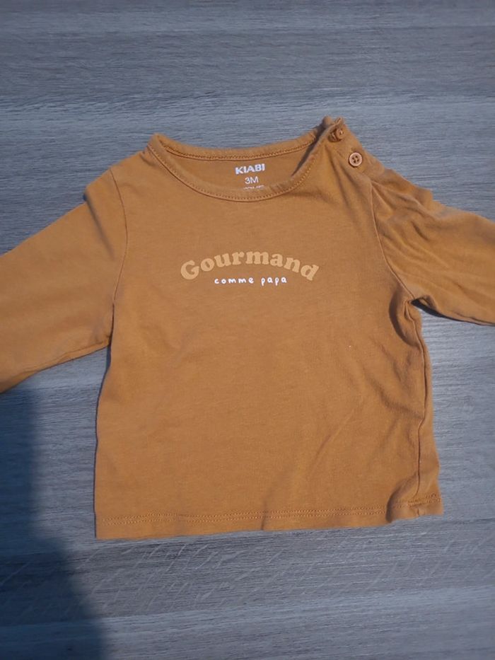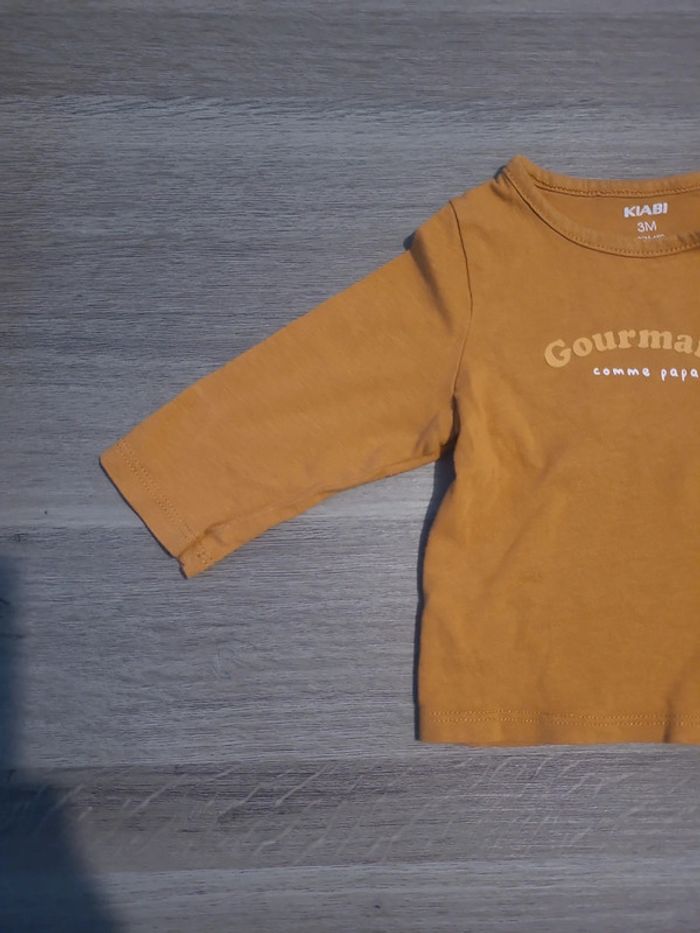 Joli petit Tee-shirt à manches longues de couleur jaune moutarde. De la marque kiabi. En très bon état. 🎀 3 mois 🎀 60 cm 🎀 6 kg 🎀 100 % coton 🎀 très bon état 🎀 kiabi #elodiectr44teeshirtbebe3mois