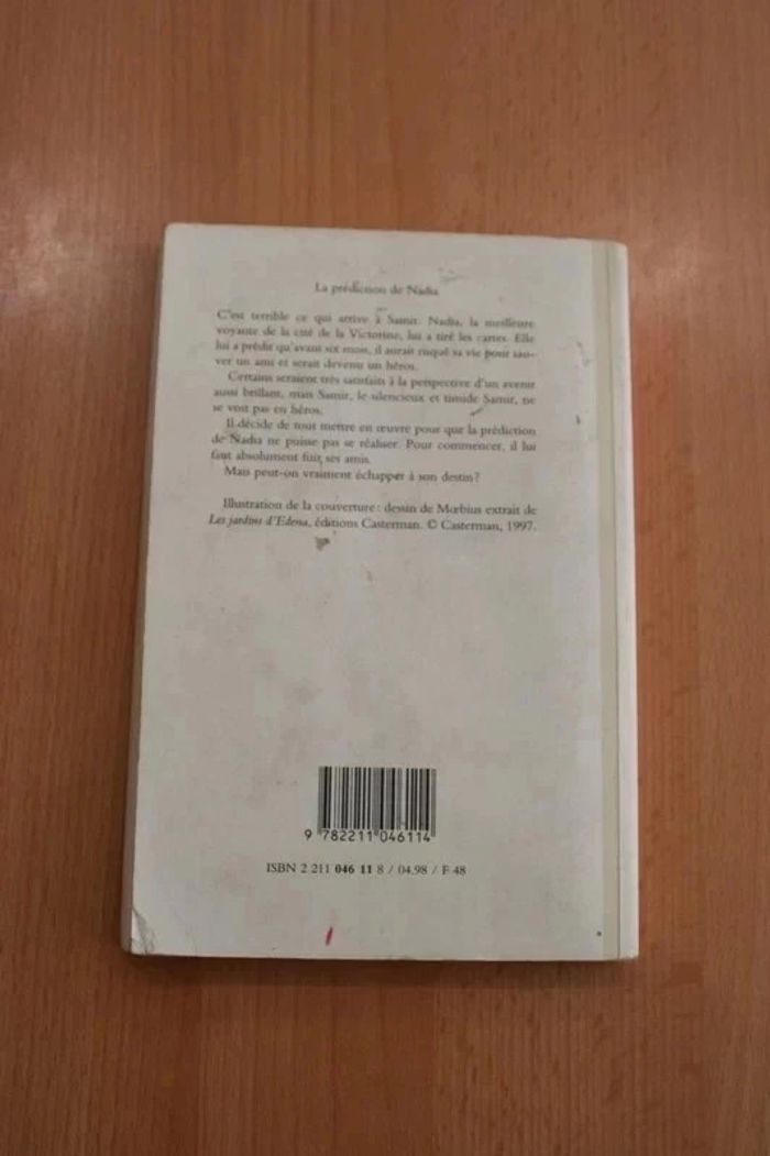 La prédiction de Nadia Livre de Marie Desplechin, couverture salie et coins cornés, Dimensions 12.5 x 1.2 x 18.9 cm, 120 pages, 160g C est terrible ce qui arrive à Samir. Nadia, la meilleure voyante de la cité de la Victorine, lui a tiré les cartes. Elle lui a prédit qu avant six mois, il aurait risqué sa vie pour sauver un ami et serait devenu un héros