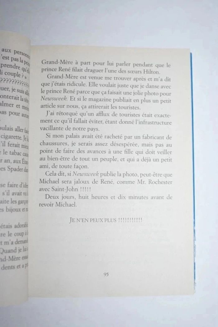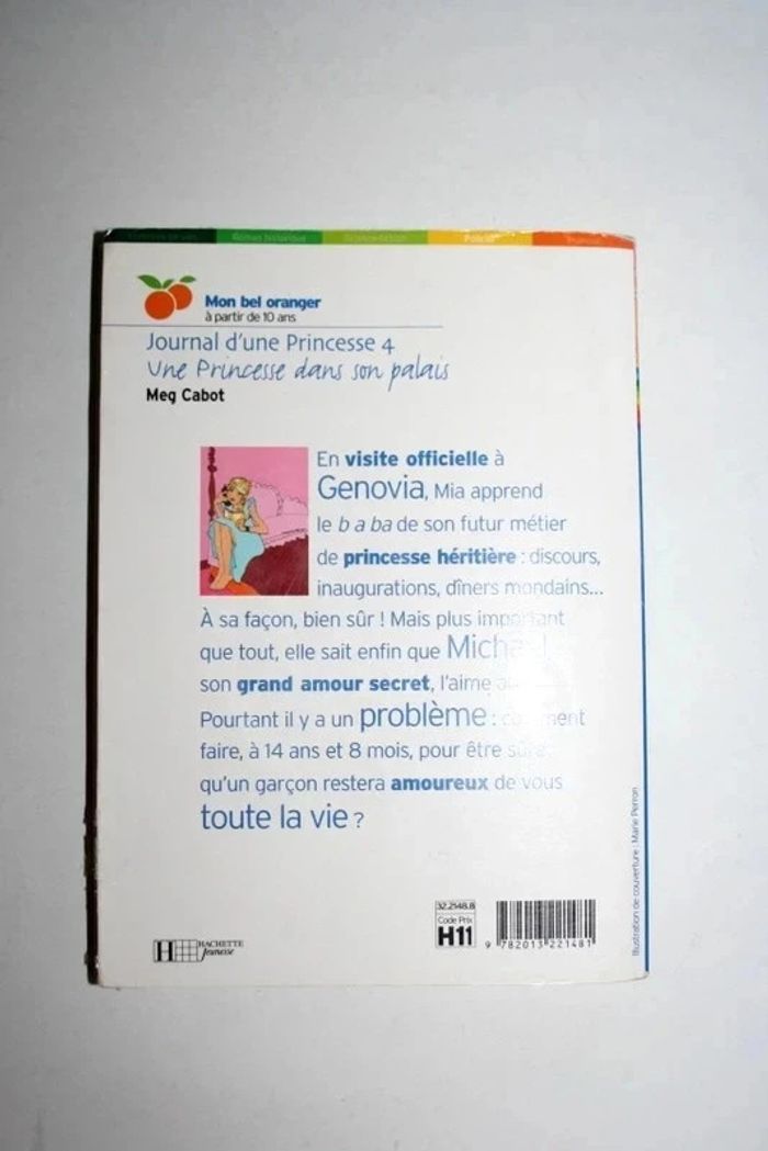 Journal d'une princesse Tome 4 : Une Princesse dans son palais de Meg Cabot collection Mon Bel Oranger, Édition Livre de Poche Jeunesse, 252 pages, reliure intérieure un peu abimée, à partir de 10 ans, 185g Mia est pour la première fois en visite officielle à Genovia en tant que princesse héritière du trône. Mais elle ne pense qu'à Michael qui, pendant ce temps, l'attend à New York, toujours aussi amoureux...