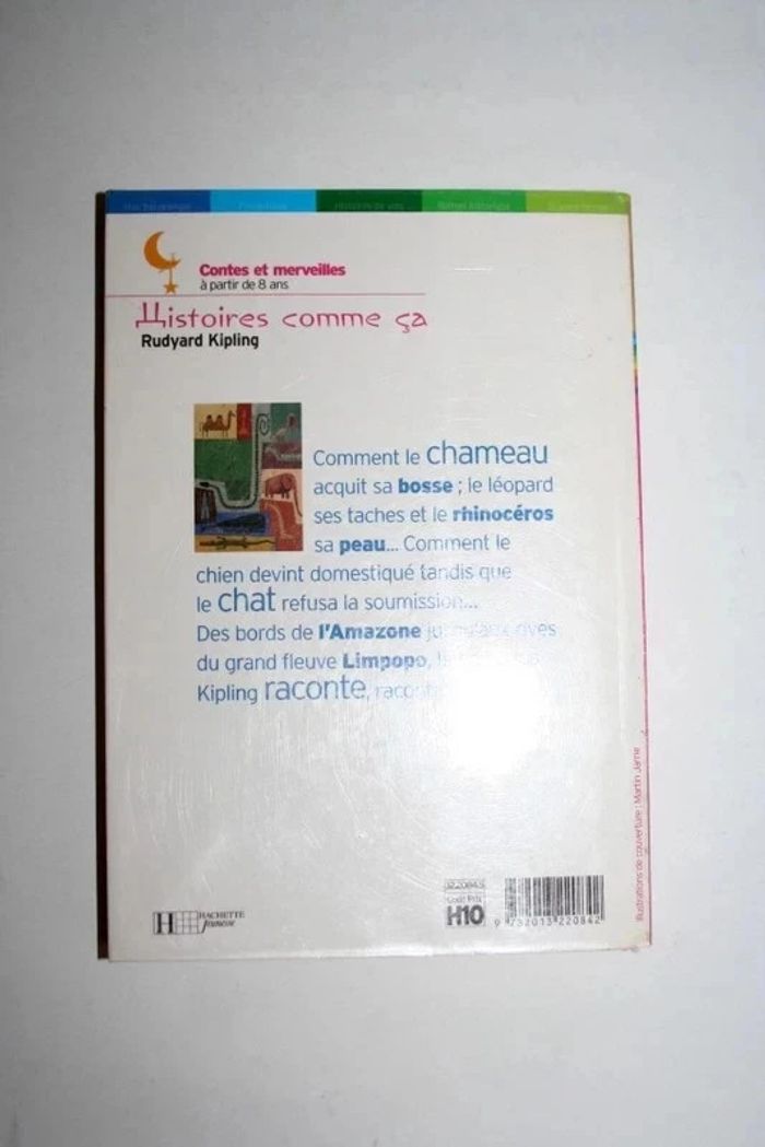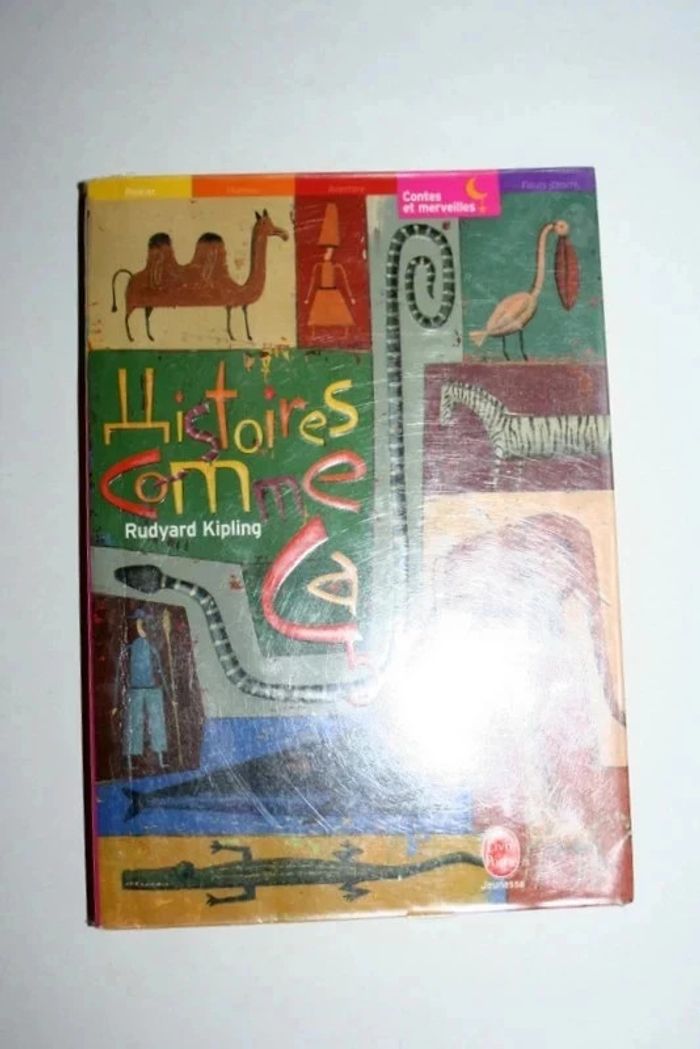 Histoires comme ca de Rudyard Kipling, collection Contes et Merveilles, éditions Livre de Poche Jeunesse, protégé par une couverture en plastique, à partir de 8 ans, 210 pages, 170g Rudyard Kipling connu pour Le livre de la jungle a également écrit pour sa fille, 12 fables mettant en scène des animaux de la jungle et de la savane. Racontées avec beaucoup de malice et dhumour, ces histoires intemporelles nous emportent dans lunivers du chat qui marchait tout seul, du chameau et sa bosse ou encore comment léléphant a eu sa trompe...