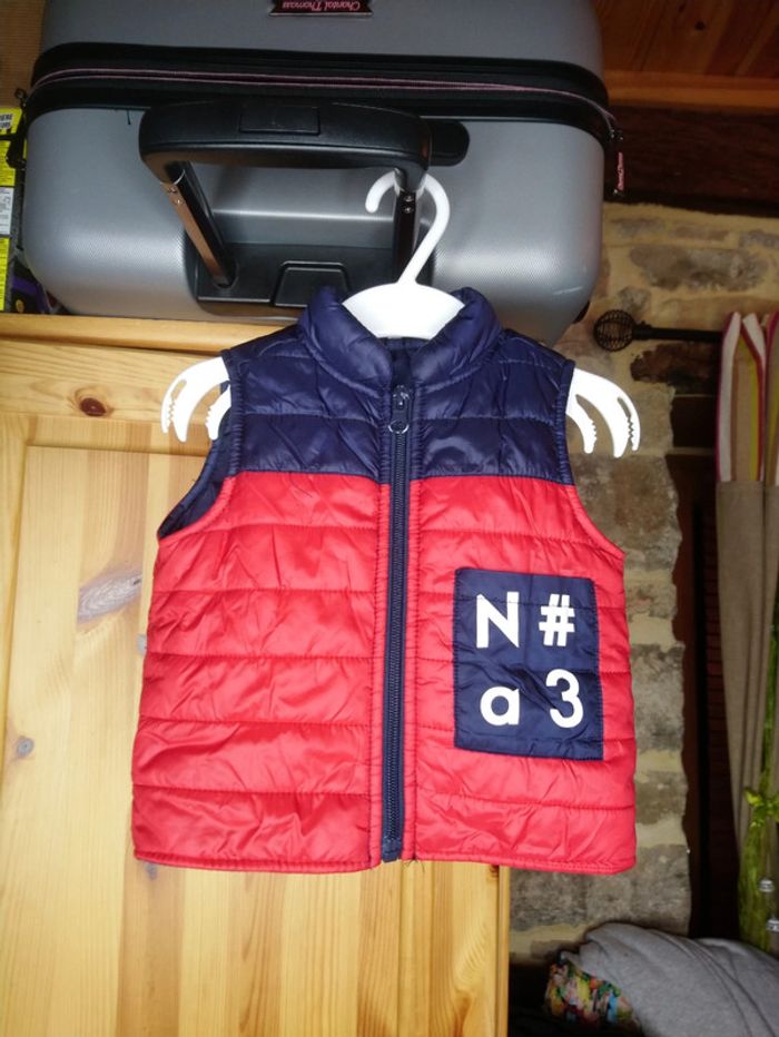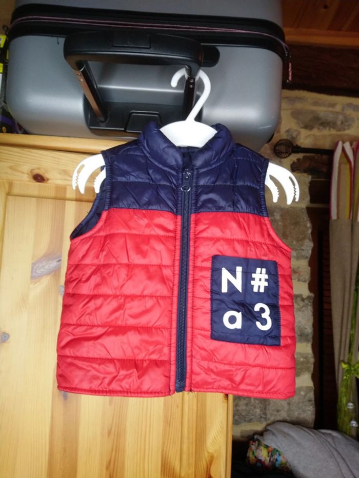 Petite veste doudoune sans manche 6 mois rouge et bleu - photo numéro 1