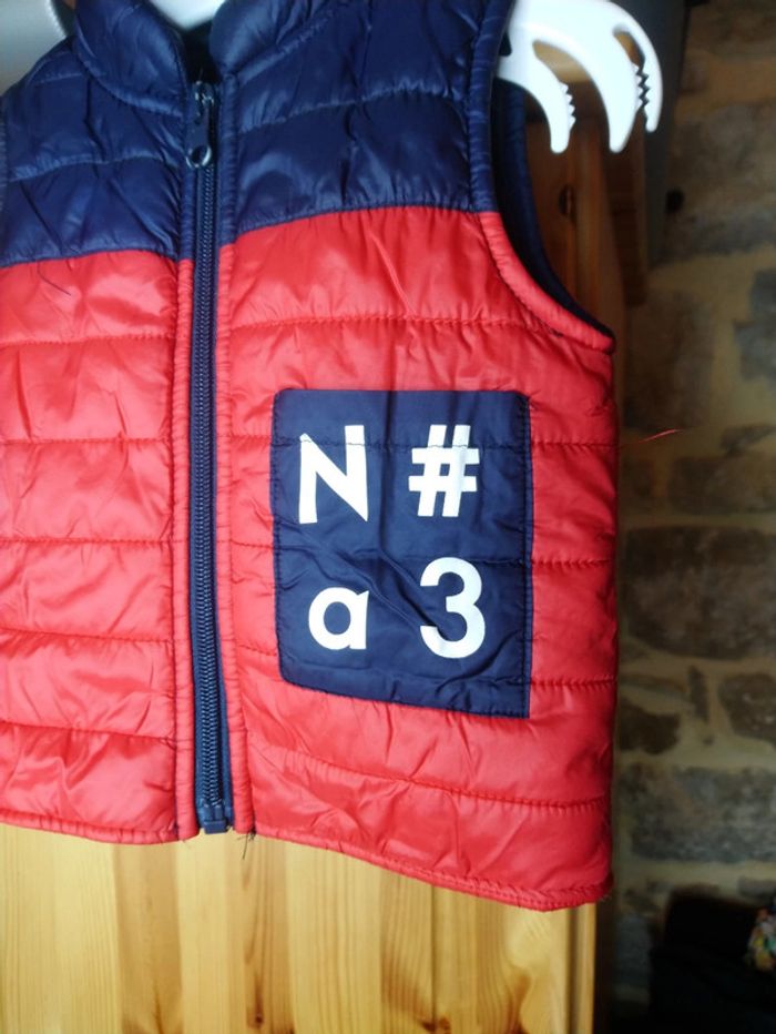 Petite veste doudoune sans manche 6 mois rouge et bleu - photo numéro 3