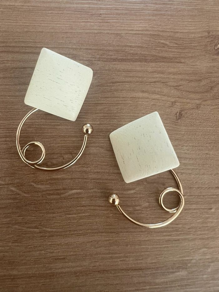 Boucles d’oreilles originales Hauteur de la boucle environ 4,5 cl Carré en bois