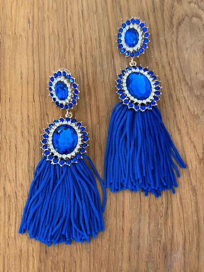 Très jolie paire de boucles d’oreilles bleu Hauteur de la boucle environ 9 cm Pour oreilles percées