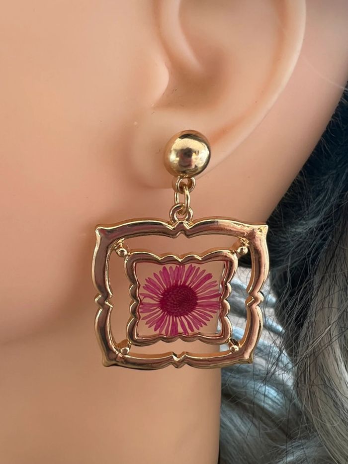 Boucles d’oreilles fleurs séchées rose Hauteur de la boucle environ 4,5 cm