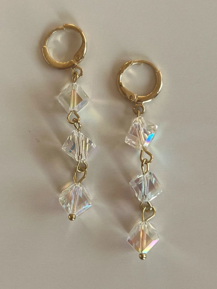 Boucles d’oreilles carrés brillantes Hauteur de la boucle environ 5 cm Ref 170
