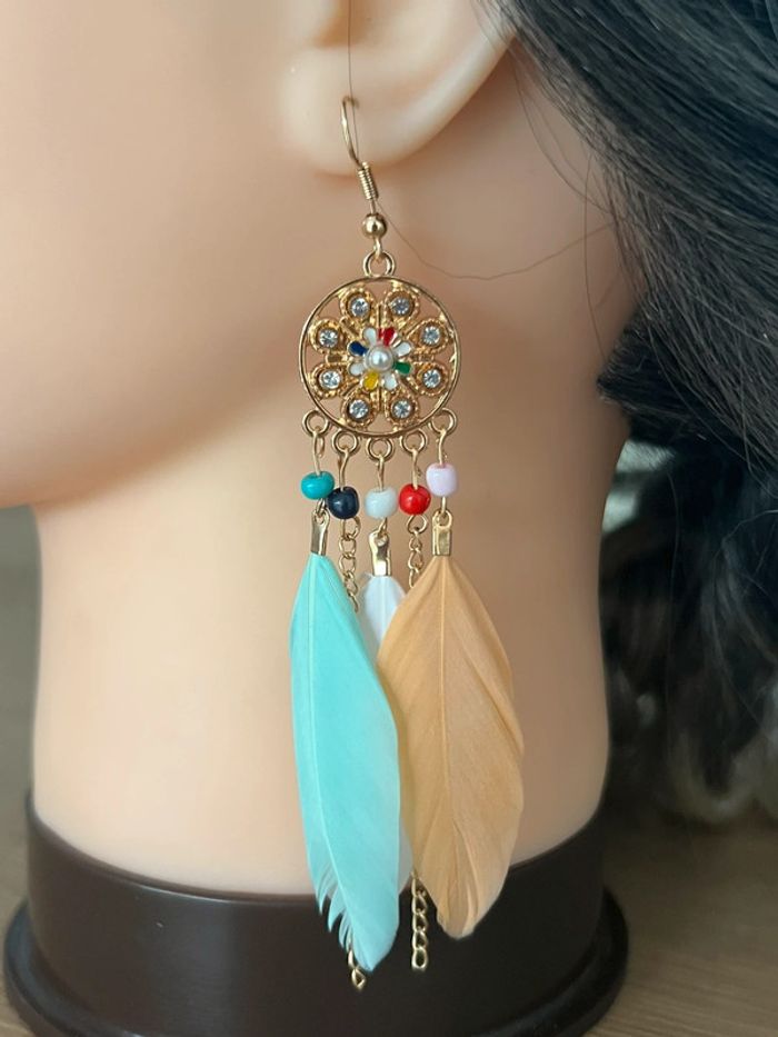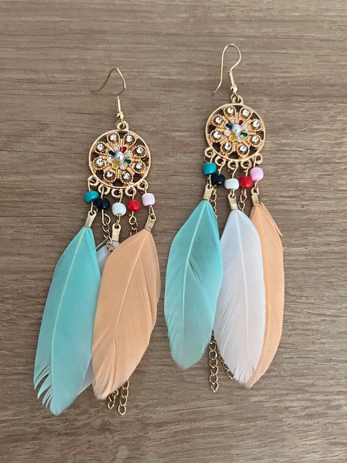 Boucles d’oreilles plumes multicolores Hauteur de la boucle environ 11cm
