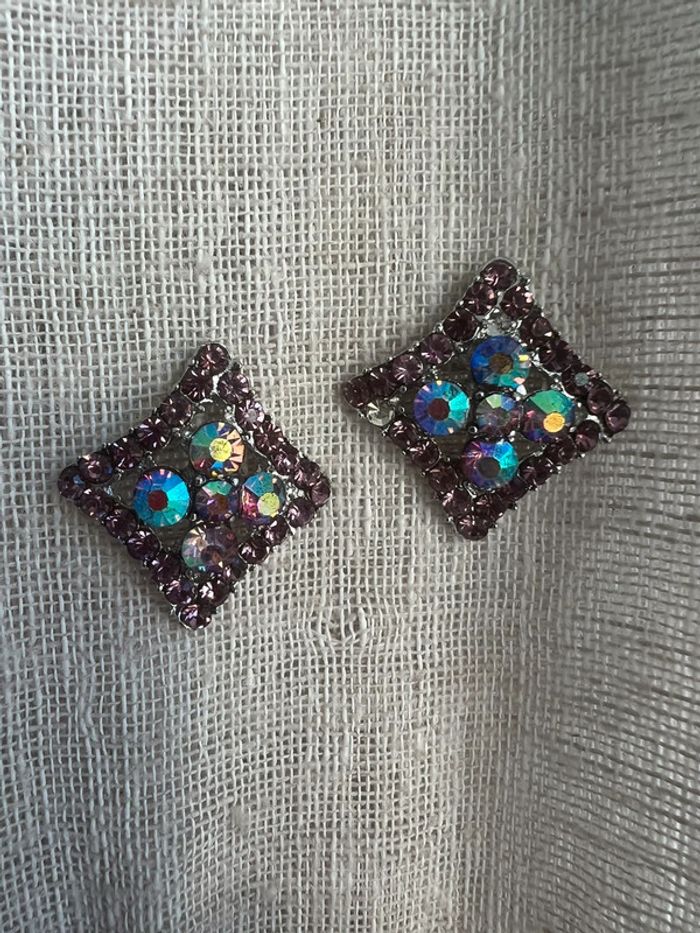Boucles d’oreilles strass roses Longueur du côté ; 2 cm