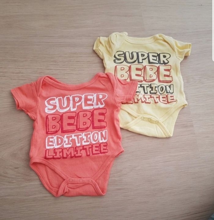 Lot de 2 bodys édition limitée super bébé En 3 mois Tres bon etat Marque babygro