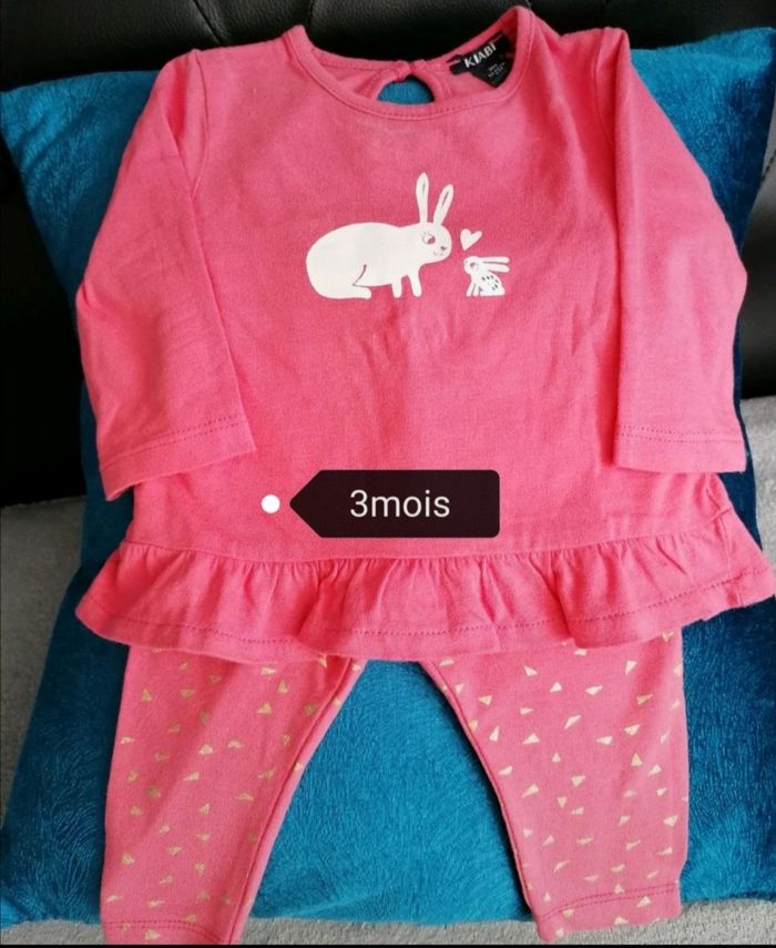 Tunique + legging Bébés filles, marque kiabi. Age 3mois ( 56-62cm). Couleur rose Porté, aucune tache 4€