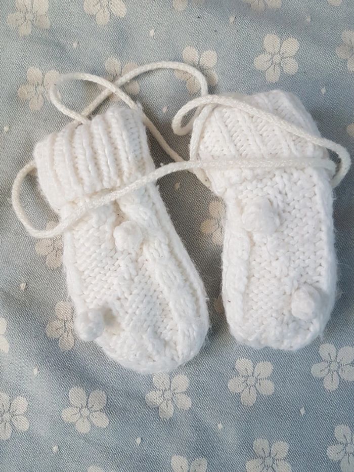 Jolie paire de moufles façon tricot. De 2 à 9 mois environ