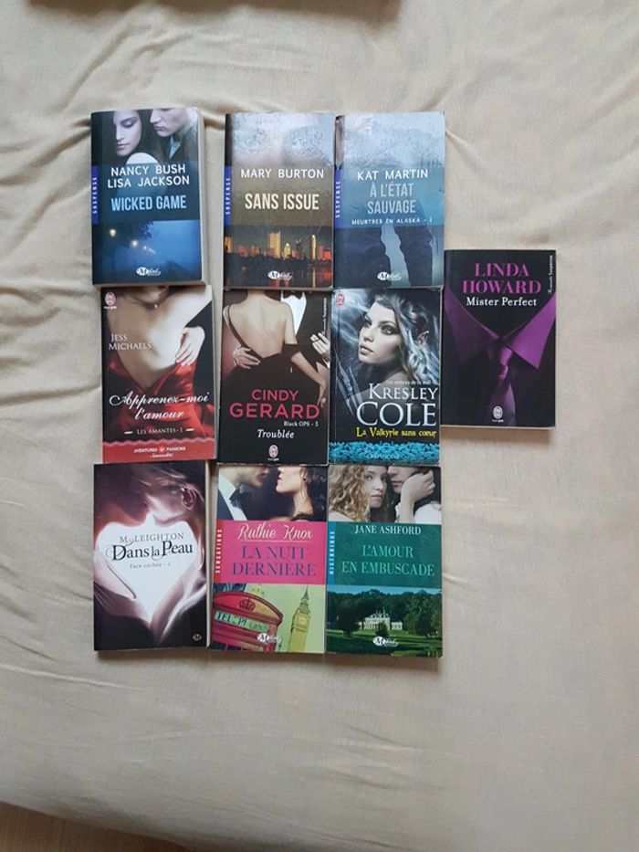 En très bon état certains un peu jauni sur la tranche mais rien de gênant. Photos supplémentaires sur demande. Achat du lot ou à l'unité. 3€/pièce Ou 20€ le lot #nessnouss93livres Wicked game Sans issus A l’état sauvage Apprenez moi l’amour Troublée La valkyrie sans coeur Mister perfect Dans la peau La nuit dernière L’amour en embuscade #lectureplaisir #lectureromance #romanfantastique