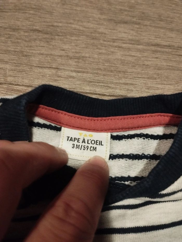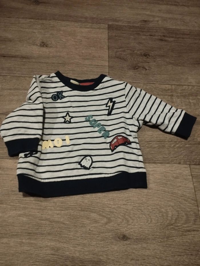 Sweat rayé tape a l'oeil noir et crème comme neuf taille 3 mois #g6k01_taille3mois
