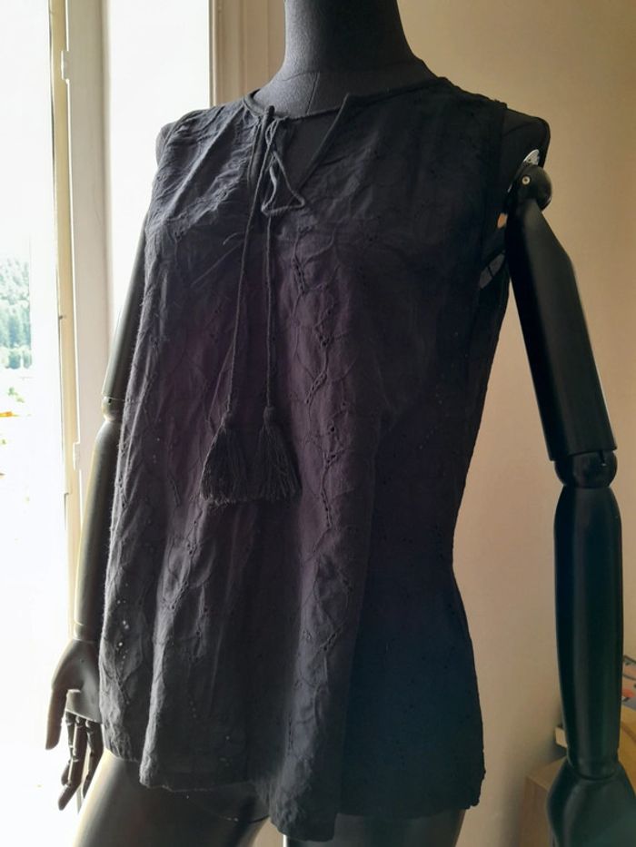 Blouse noir broderie ajourée XL Nœud sur le devant - photo numéro 2