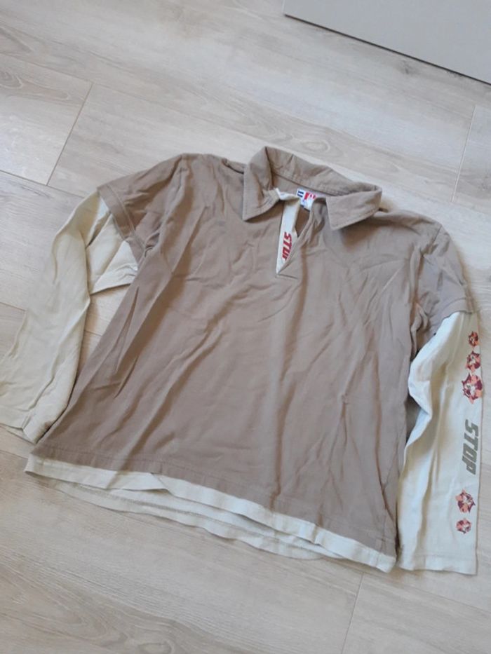 Tshirt manches longues rainbow, effet 2 en 1 beige, t.46/48, largeur 52cm, traces de décoloration sous un bras (merci le deo...), maison non fumeur #shakottefemme