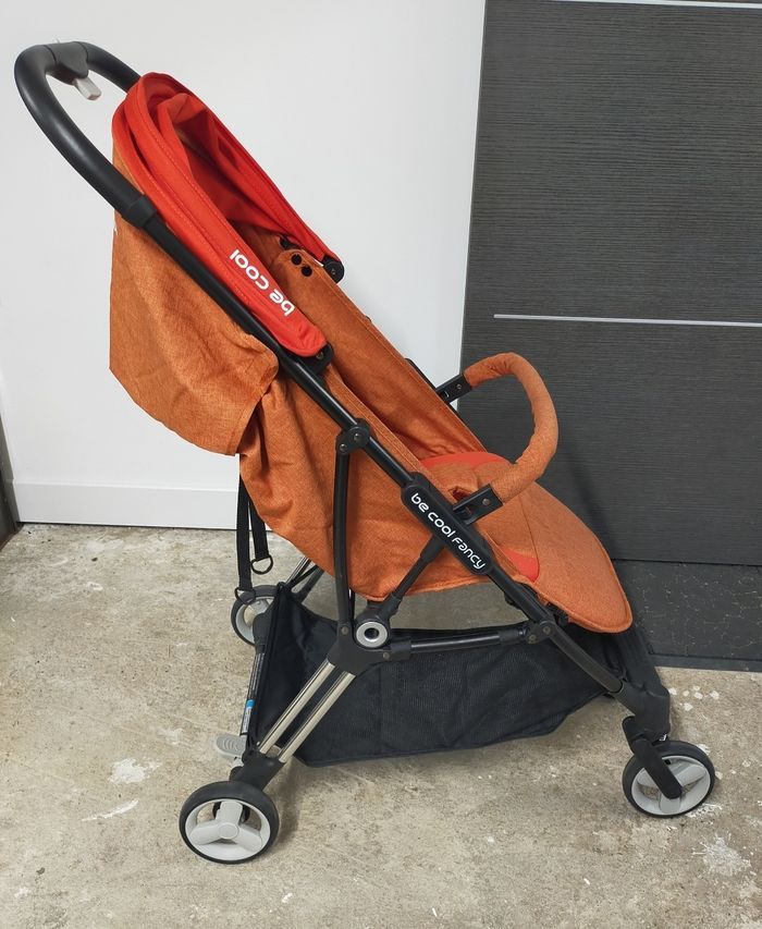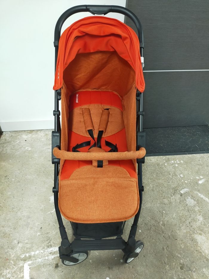 Poussette fancy. son système de pliage semi-automatique semble magique. d'une seule main et en un seul mouvement, la poussette se replie et se soutient. caractéristiques: châssis ergonomique 100% aluminium, poids total de 6, 3 kg. pliage semi-automatique. inclinaison à positions multiples (du nouveau-né). harnais 5 points. protecteur avant amovible. repose-pieds réglable. suspension à quatre roues. roues amovibles de 12, 5 cm de diamètre. grand panier. bulle de pluie incluse. dimensions ouvertes: 98 x 47 x 80 cm. dimensions fermées: 60 x 47 x 25 cm. De 6 mois à 15kgs Très bon état, juste quelques toutes petites tâches noires sur le dossier et un protecteur de harnais Ne peut pas faire partie d'un lot avec réduction