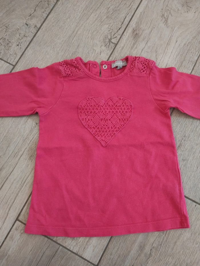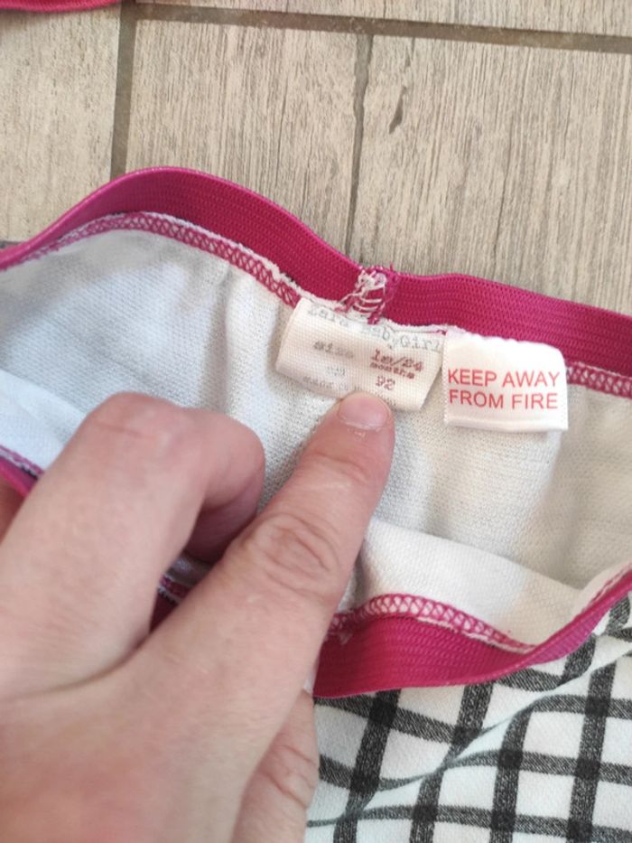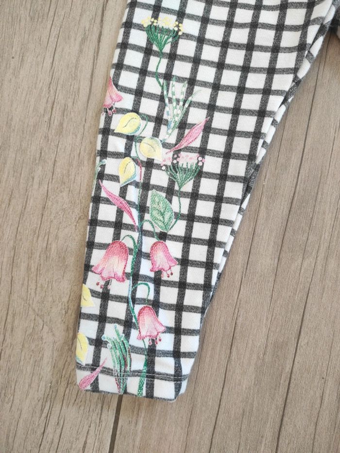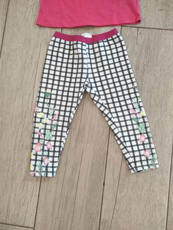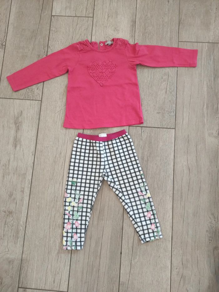 Ensemble fille en 18/24 mois : T-shirt manches longues rose motif coeur, 18 mois, Grain de Blé Pantalon élastique à carreaux et fleurs, 18/24 mois, Zara