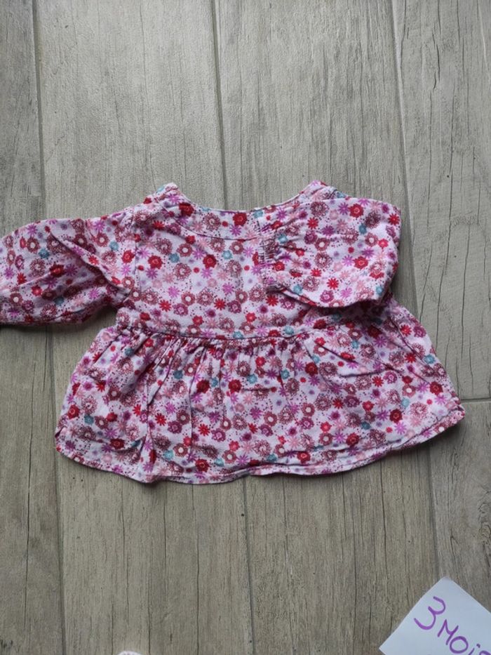 Ensemble pour fille composé de : 🌜 Une chemise manches longues rose avec des fleurs. Verbaudet 3 mois (60cm) 🌜 Un pantalon rose clair, marque Do l Enfant mais sans étiquette de taille. ⚠️ Petite tâche voir photo 🌸je vends d'autres vêtements 1 mois n'hésitez pas à faire défiler tout le dressing pour voir l'ensemble des articles. Pensez à créer un lot :) 🌸