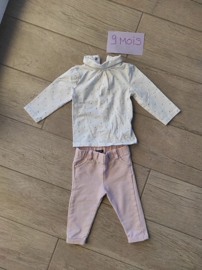 Ensemble fille pantalon rose et pull col roulé 9 mois - photo numéro 1