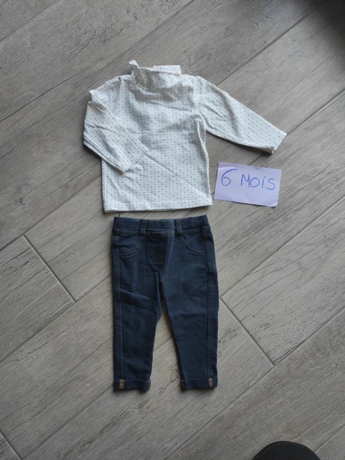 Ensemble pour bébé fille en 6 mois. Lavé mais pas porté : 🌸 Un jegging bleu Tape à L'oeil 🌸 Un pull collé roulé motifs petites étoiles, Kiabi 🌞 je vends d'autres vêtements en 6 mois plus bas dans le dressing n'hésitez pas à faire défiler pour faire un lot 🌞