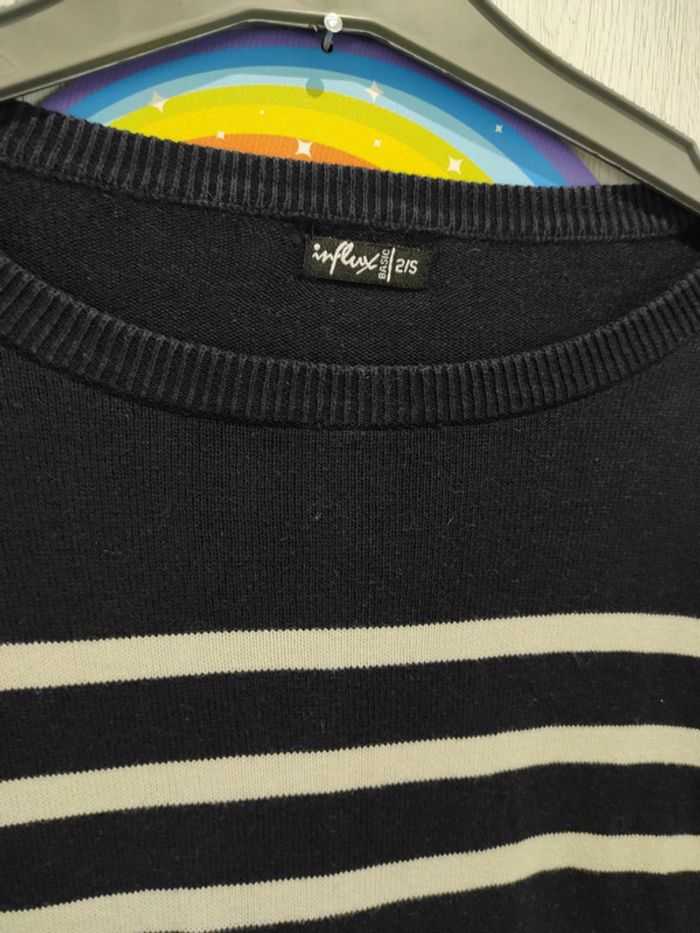 Pull marinière rayé blanc et bleu marine, pour homme taille 2/S. Influx Peu porté, en parfait état ↪️ N'hésitez pas à créer un lot, la réduction automatique est activée 🌺