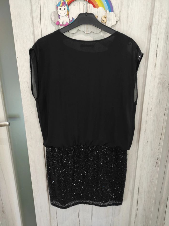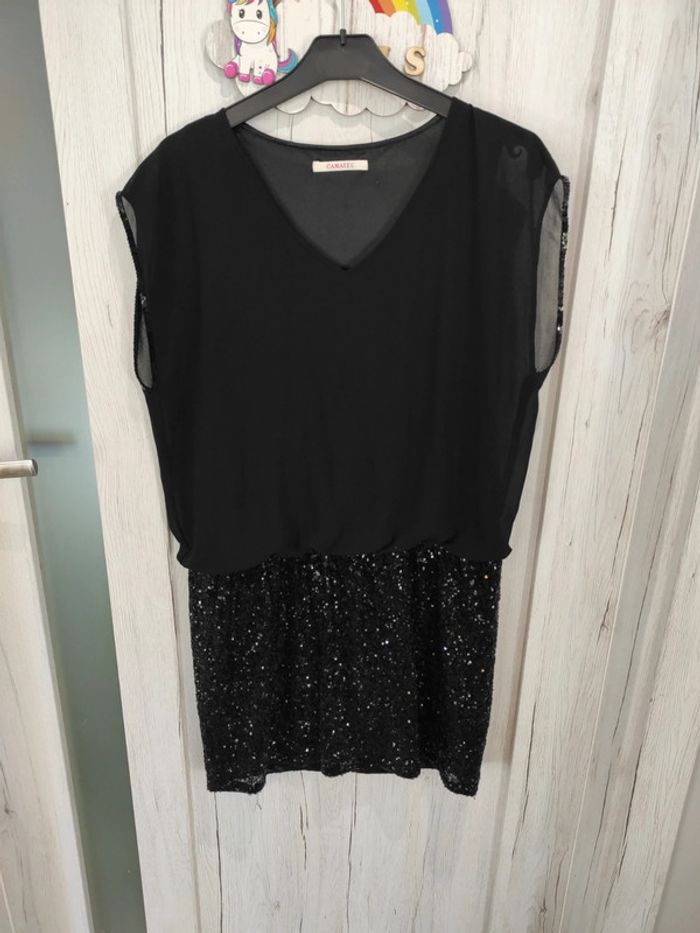 Très jolie robe de fête, avec des sequins. Etat proche du neuf. Idéale fête de Noël ou autre cérémonie Marque camaïeu mais étiquette de la taille coupée, correspond à un 40