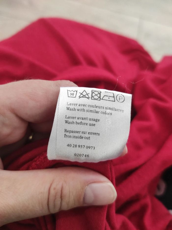 Pull rouge manches longues 3/4 avec joli décolleté. Taille M, marque Gémo. ✅ Pour filtrer par taille : aller dans "chercher" puis taper mon pseudo et mettre les filtres souhaités (taille...) ✅ Réduction automatique dès 5 articles + remise supplémentaire sur les gros lots