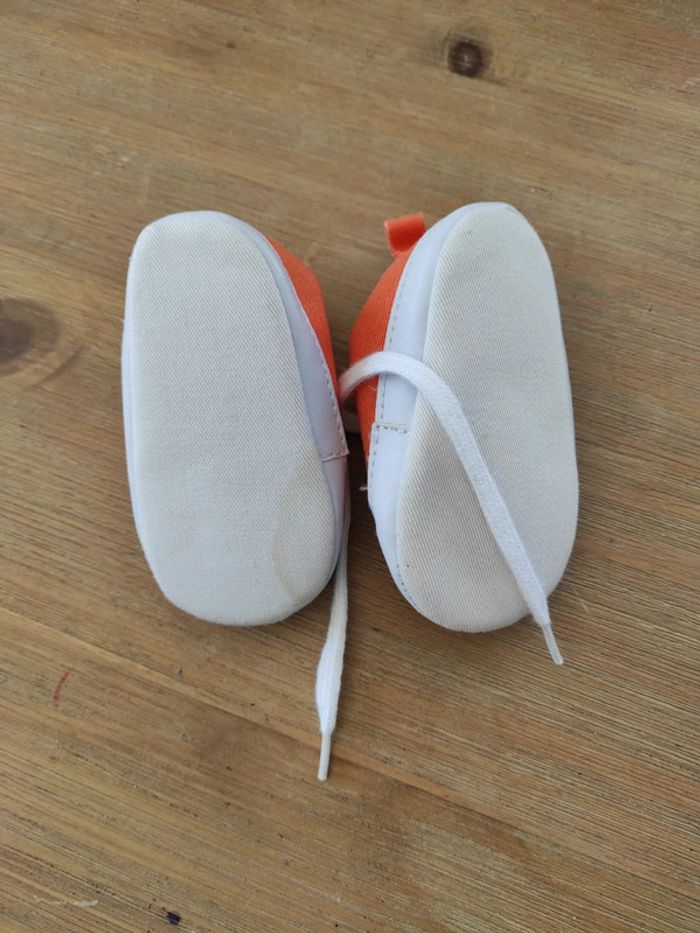 Chausson pour bébé 3/6 mois (plus d'étiquettes). Taches jaunes sur la semelle dû au stockage je pense car elles n'ont jamais été portées (doit partir au lavage)
