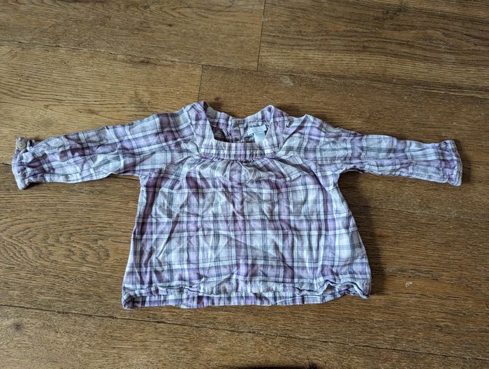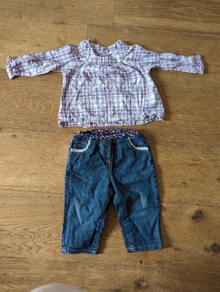 Blouse à carreaux mauve très bon état Jean léger avec poches cœur très bon état