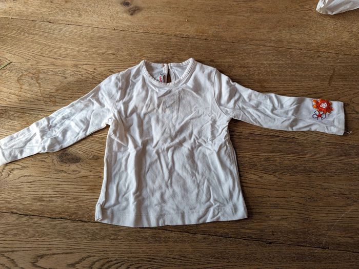 Très bon état. Tee shirt manches longues blanc et legging violet.