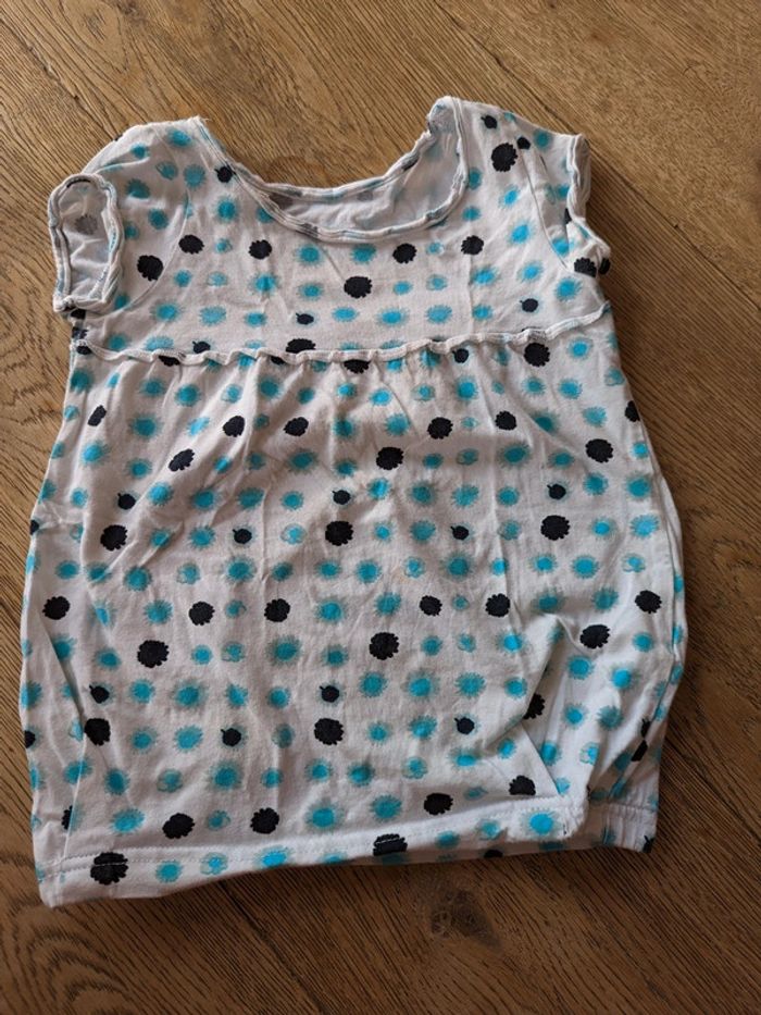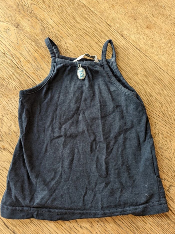 1 short bleu marine 2 ans très bon état 1 débardeur avec médaillon bleu marine 2 ans très bon état. 1 débardeur blanc à pois bleus 2 ans très bon état.