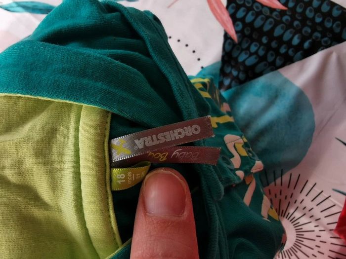 Très bon état. Vert foncé et vert clair. Marque orchestra, 18 mois mais taille assez petit je trouve.