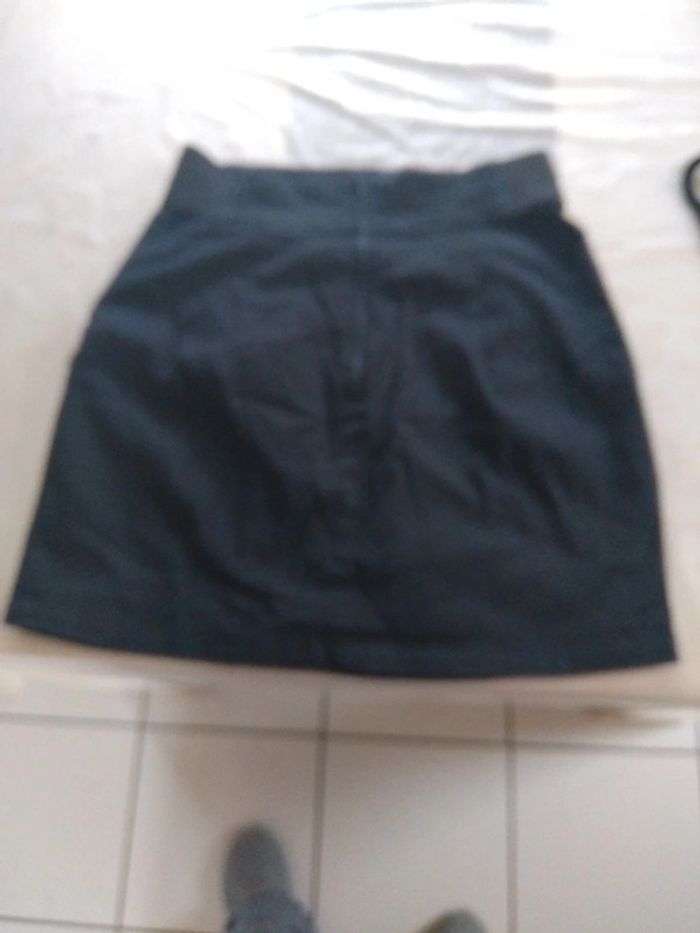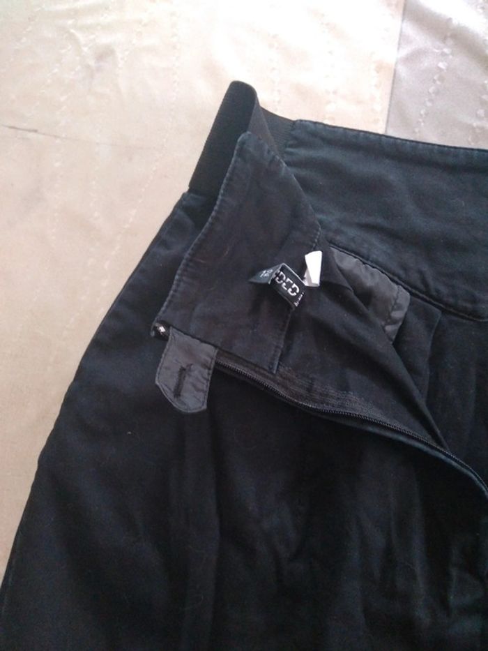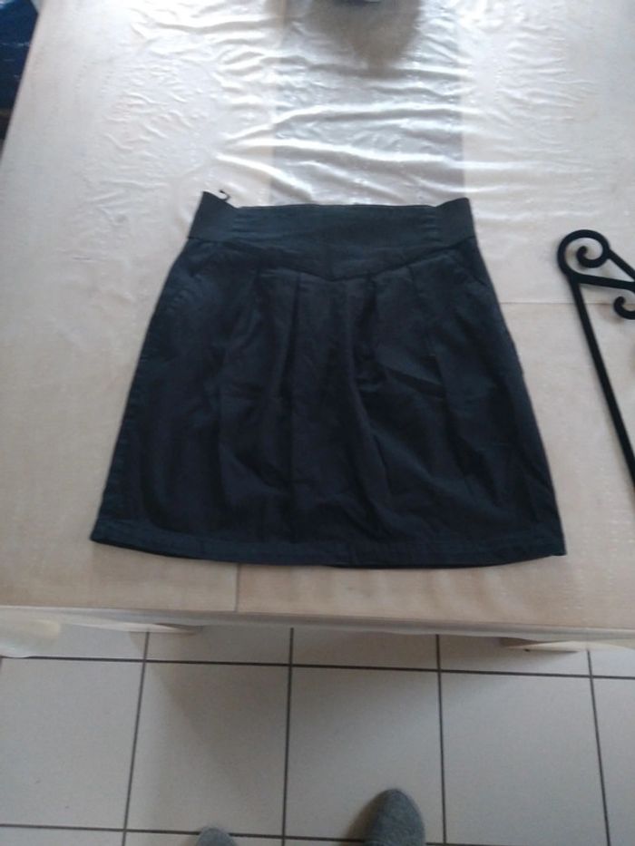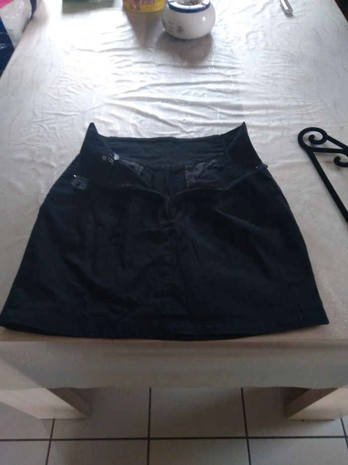 Petite jupe noire, 2 poches, fermeture éclair et bouton au dos..gros élastique sur les côtés