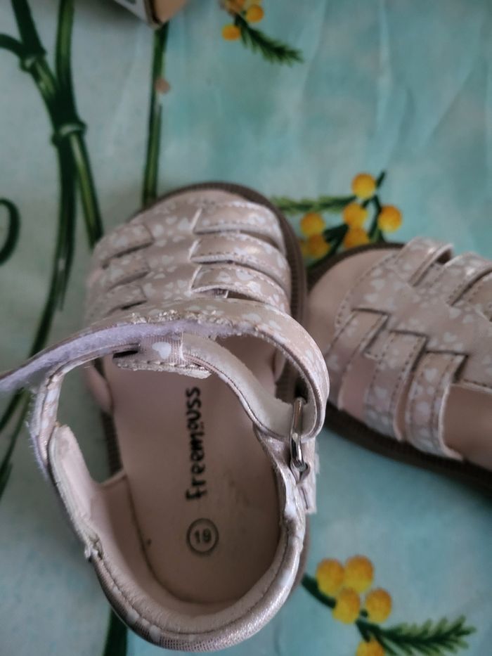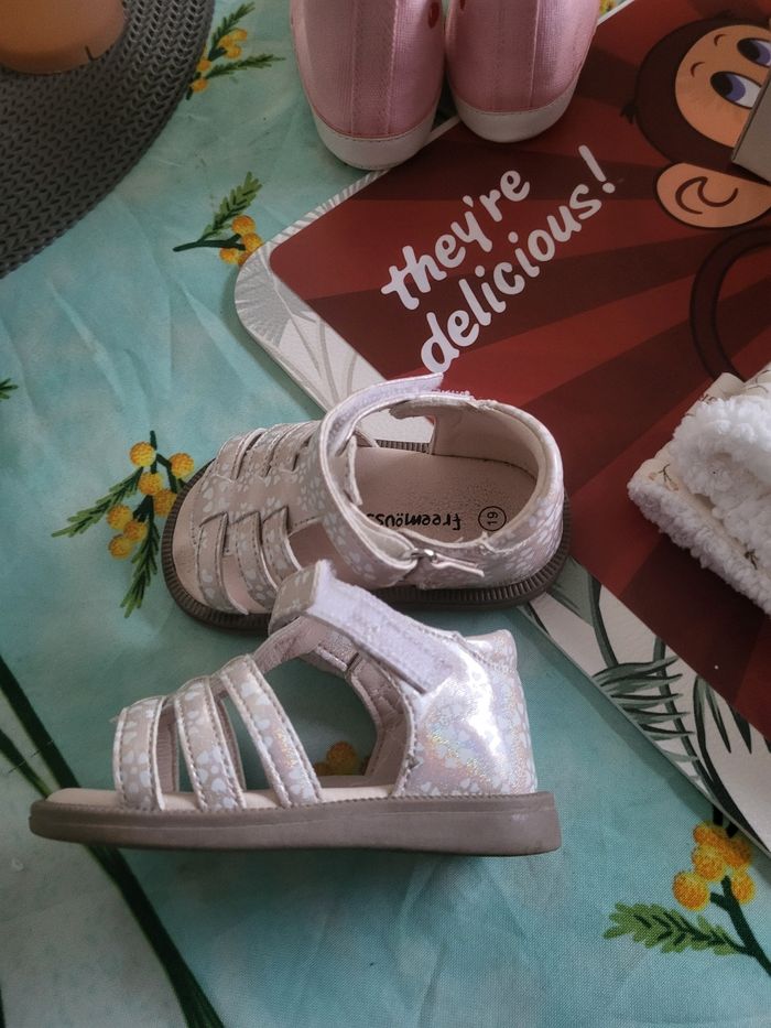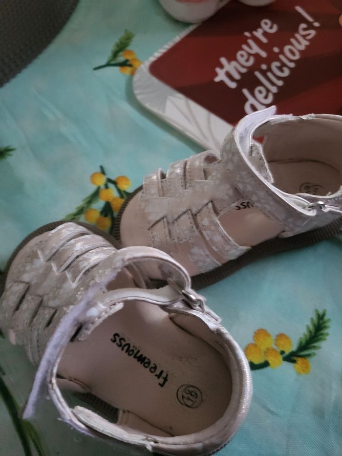 Sandale acheter il ya 2 moi ma fille et pasee au 20 Taille 19. 1cheter 25 euro . Couleur rose vernis pailleter avec motif cœur. Free